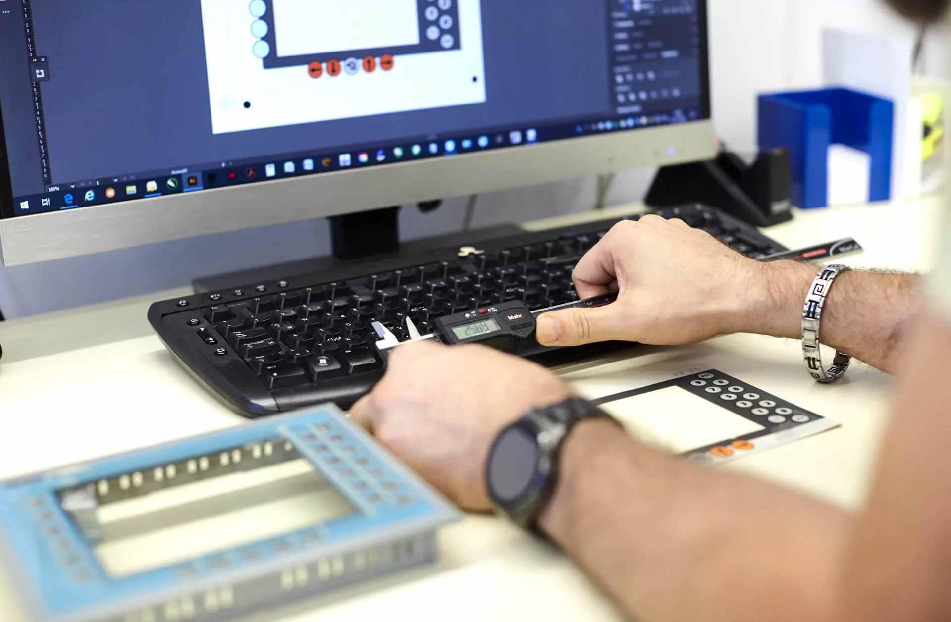 Sie benötigen eine passgenaue Folientastatur für eines Ihrer Produkte? Oder ein bedrucktes Ersatzteil? Eine passgenaue Baugruppe?Fragen Sie uns auch für die Konstruktion Ihrer Tastaturbeschriftung an.Auf Wunsch konstruieren unsere technischen Mitarbeiter die Leiterbahnen und passen die Beschriftung exakt darauf an.